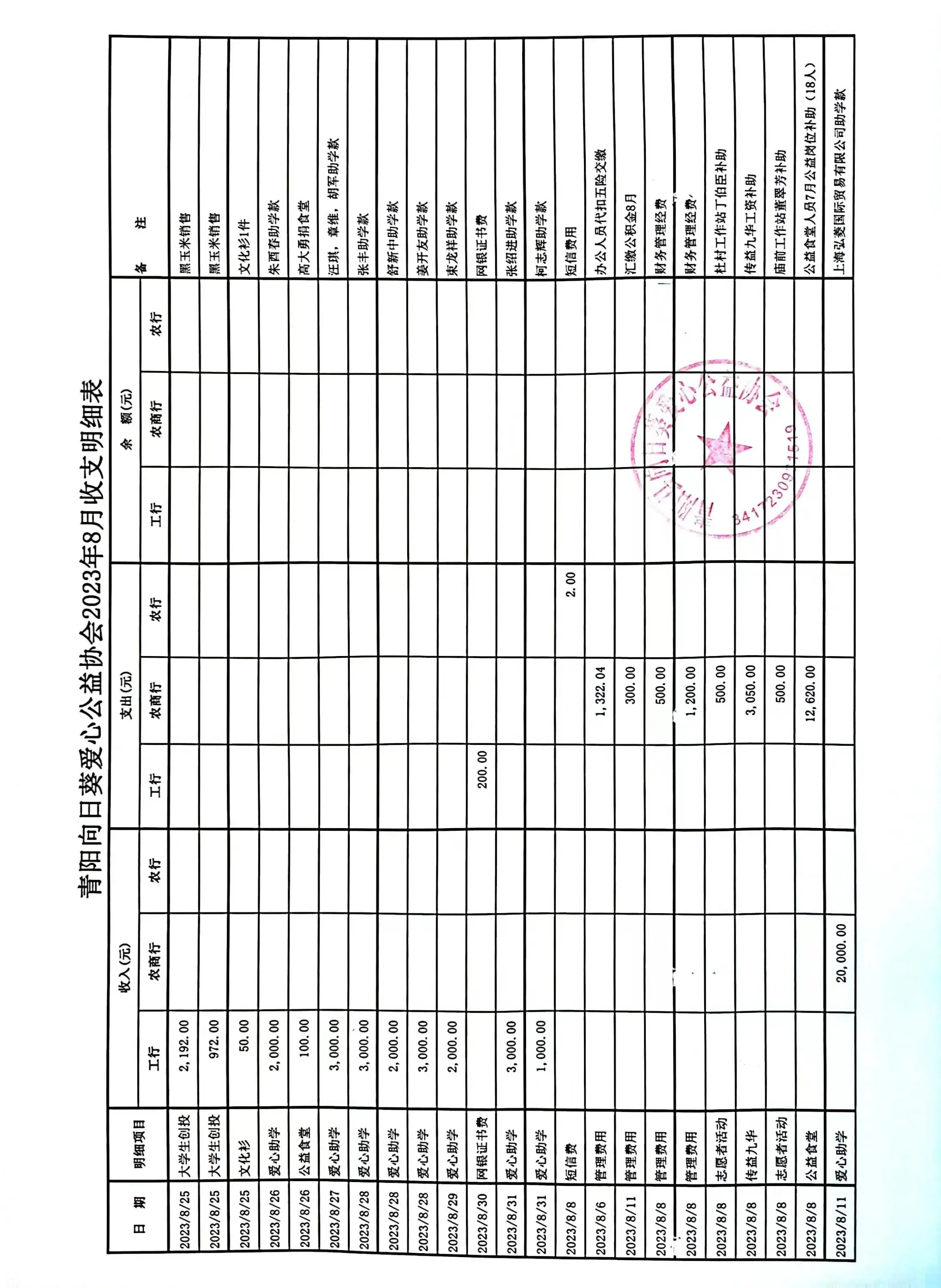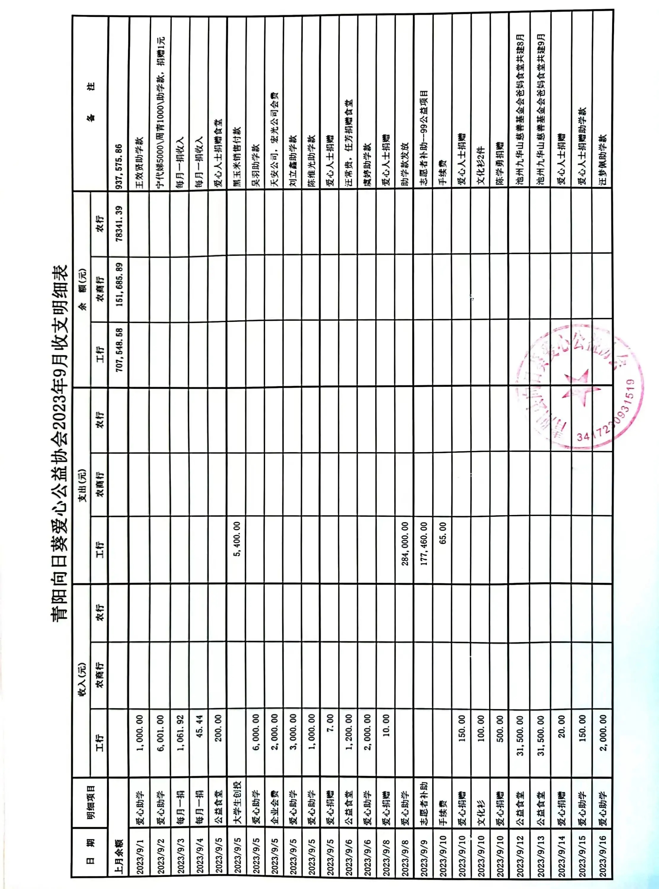 [活动] 向日葵爱心公益协会2023年第三季度财务公示