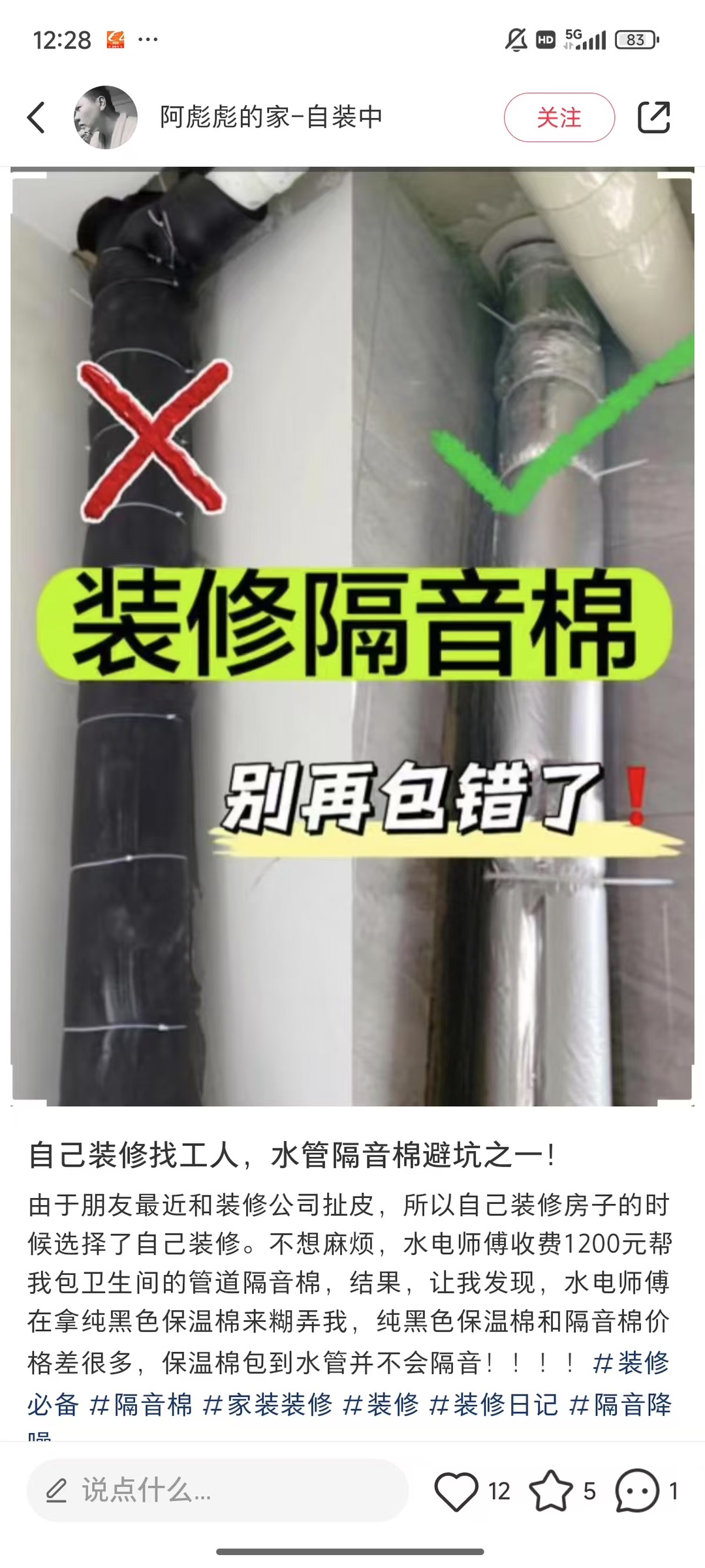 装修公司给我们下水道隔音棉用的是这种黑色材质的保温棉 |